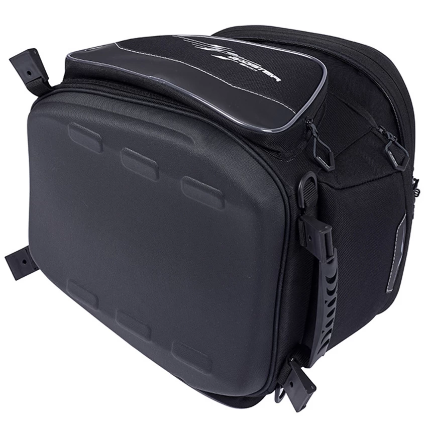 The Travel line range consists of bags and saddlebags featuring volumes tailored to travel. The materials have been specially chosen for their strength and technical characteristics. The X-Plore saddlebag, with its thermoformed base, easily attaches to your saddle or backplate with straps. The large, practical compartments make this saddlebag a must-have for your motorcycle trips