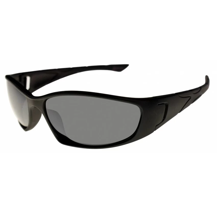 Sunglasses from Bercom have a sporty look. The matt black frame and the sturdy Smoke coloured glasses are made of polycarbonate.