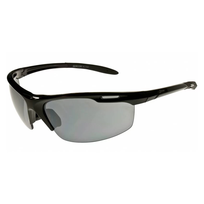 These Bercom sunglasses are cool, sporty glasses with a light durable frame. The “Smoke” glasses are also made of a light and durable material. The glasses offer UV400 protection to the eyes.