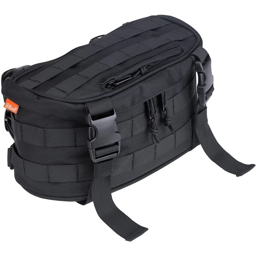 The EXFIL-7 is customizable for different applications and mounting locations. Mount your EXFIL-7 bag on the frame’s down tubes, above the headlight on tall and mid-sized handlebars, and of course on both sides of a sissy bar (in front of the taillight and behind the rider’s lower back.)