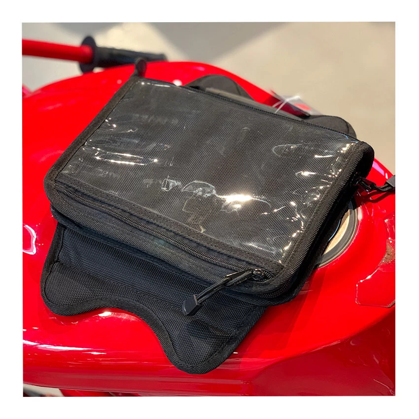 Small tank bag ideal for daily trips, with magnet attachment and handy storage compartments.