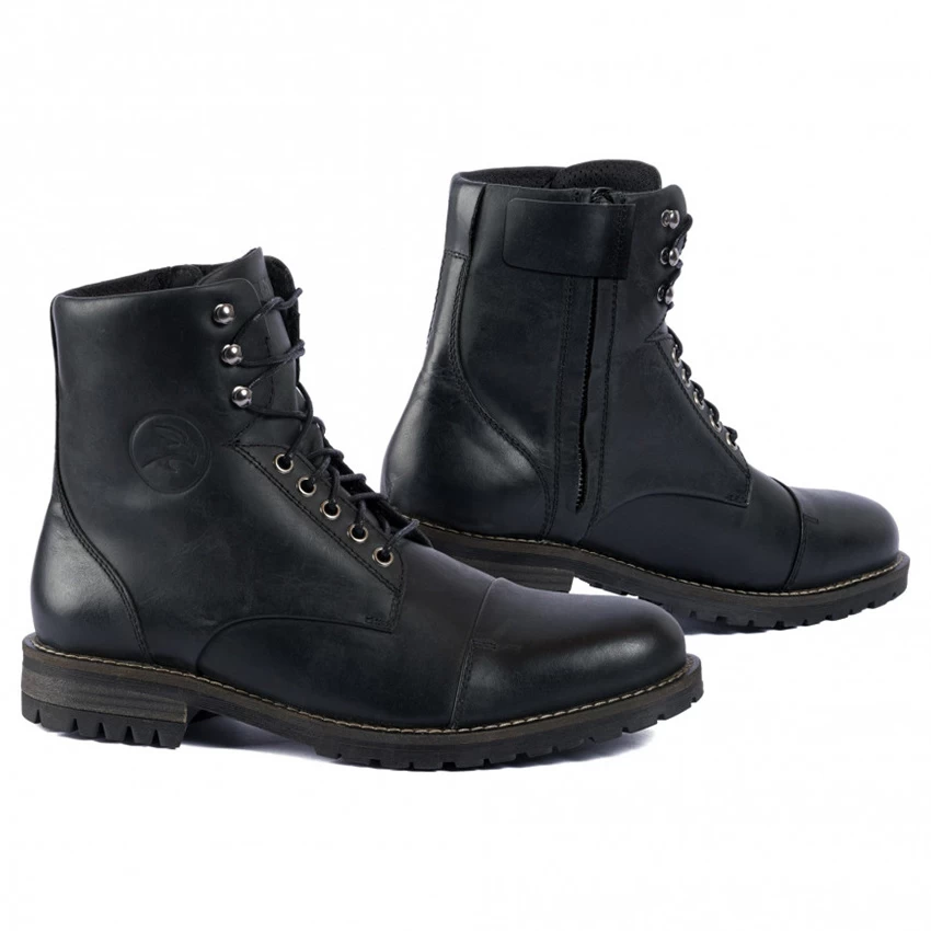 The Falco Gordon motorcycle boot offers a classic look with high comfort. Made of full-grain and oil-treated leather reinforced with ankle cup inserts and D3O® impact protection and shock absorption technology. Easy to put on and take off thanks to the lace and zipper combined closure. The added High-Tex membrane is Falco’s membrane that is resistant to water penetration.