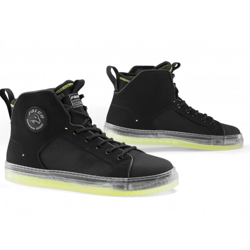 Ideally suited for rides in good weather. The Falco Starboy 3 motorcycle shoes have an urban modern look with a transparent rubber sole with a neon color effect. Made of sturdy micro-synth material with air-tech ventilated inserts for cooling during hot days. Protection is provided by the D3O ankle cups. Ergonomic fit and the lace-up closure also make this shoe very comfortable when you get off the bike. [spec]