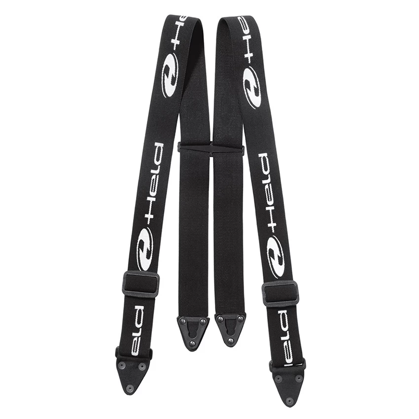 The suspenders are not equipped with traditional pegs but have four sliding fasteners that slide over the same number of button fixtures on the waistband of the Held pants, two at the front and two at the back. The (Held) pants must therefore be equipped with these buttons.