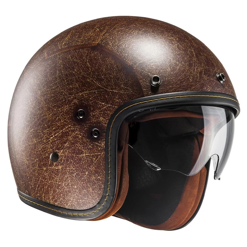 The HJC FG-70S is a retro-styled open face helmet with an outer shell constructed from an advanced Aramid and fibreglass matrix composite weave. It has a fully removable and washable interior made from SilverCool fabric, which is known for its moisture-wicking properties, it also has an anti-bacterial treatment. The EPS liner in the FG-70S is dual-density for improved impact protection and there is also an internal sun visor.