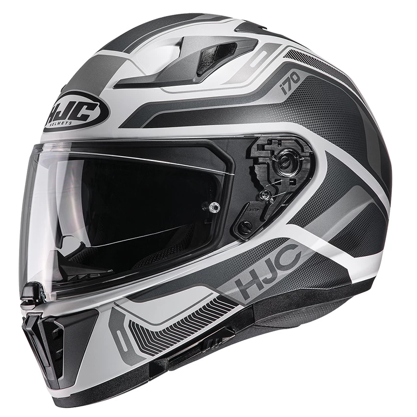 The advanced polycarbonate shell of the HJC i70 Lonex full-face helmet comes in two shell sizes (XS-M and L-XXL). The I70 offers good stability and aerodynamic properties. The visor is equipped with a Pinlock preparation and an anti-fog lens is provided. The integrated sun visor has an anti-fog coating. The i70 Lonex has 3 lockable air inlets and 2 air outlets for good air flow. [specs