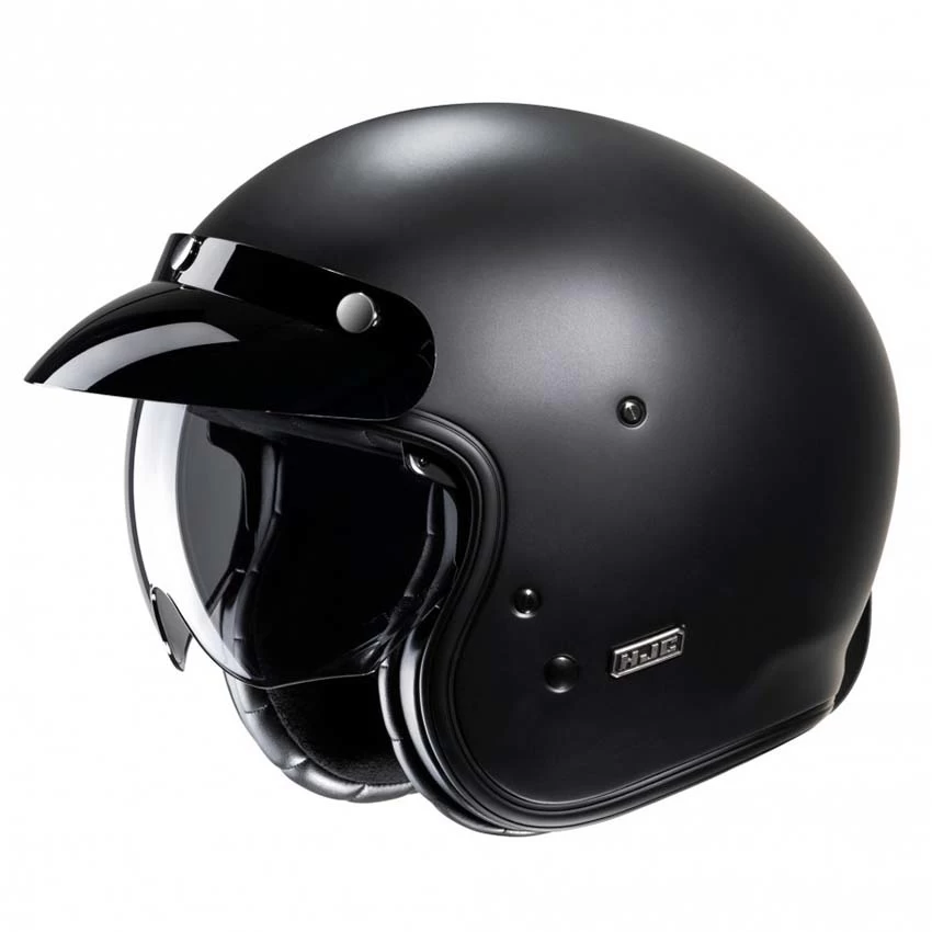 The HJC V31 is a retro-style open-face helmet composed of an advanced fiberglass composite shell to provide a lightweight helmet. This ¾ helmet features an integrated 3 position sun shield with anti-scratch coating that deploys easily to slide up or down. To enhance the vintage feeling the V30 is fitted with leather and suede interior and goggle strap holder.
