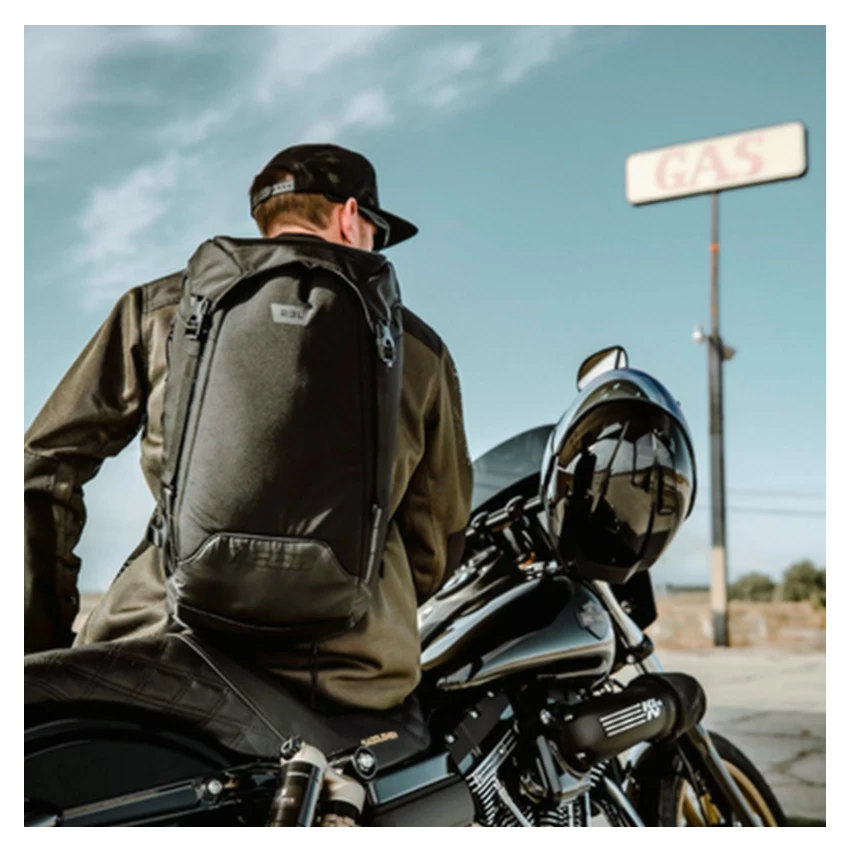 The Squad4 motorcycle backpack features a 23L capacity in the main compartment and a padded laptop compartment makes this bag ideal for all your daily items. The simple helmet carrying system is easy to deploy, allowing you to walk around hands-free. With the adjustable straps you make sure for a customised and comfortabel fit.