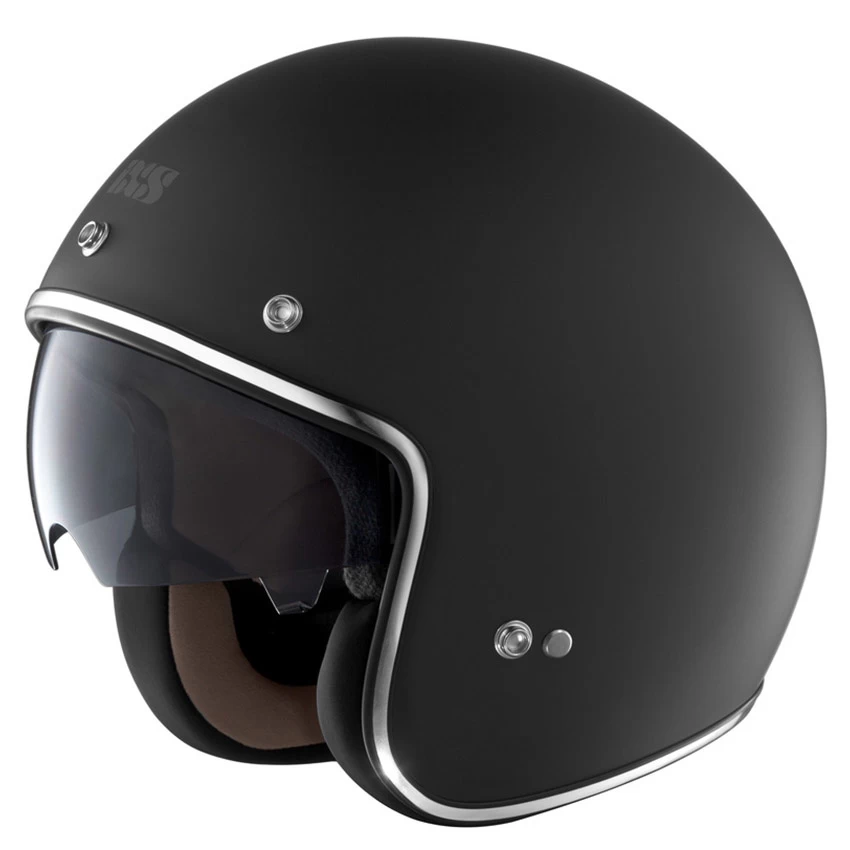 Affordable open-face helmet from IXS, the HX 77. The helmet shell is made of polycarbonate and the inner lining of comfortable polyester. The cheek pads are removable and suitable for spectacle wearers. The flip-down sun visor is easy to operate thanks to the tab on the side.