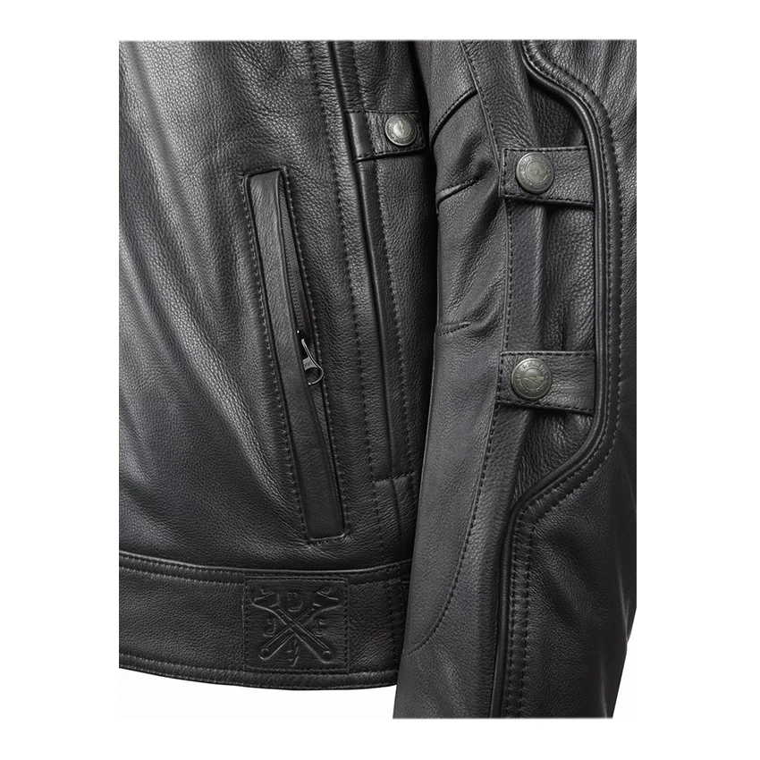 The John Doe Technical motorcycle jacket has a full cowhide outer layer that has been treated to give it a vintage look. A 100% aramid fiber wear-resistant layer has been applied under this wear-resistant layer for even more protection. Optionally you have the option to expand the John Doe Technical jacket with CE protectors on the shoulders, elbows and back. John Doe has put together a protector kit for this.