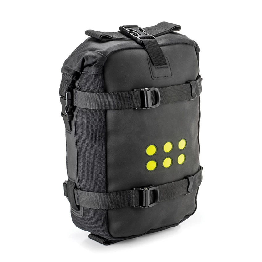 Waterproof adventure roll bag with a volume of 6 liters. The OS-6 is the ultimate all and off-road luggage option for intensive use. Thanks to the roll closure, the bag is guaranteed waterproof. The white liner has been specially chosen to give sight into the bag when searching for your items. The liner is completely removable and easy to clean. The bag is made of robust Hypalon in combination with 1000D Cordura inserts and aluminum and Acetal buckles. Practically indestructible and therefore also the well-known 10-year Kriega warranty. The Kriega Overlander OS-6 can be mounted as a stand-alone unit on a mudguard, buddyseat or tank (using OS-Rackloops or Drypack rackloops) or combined with OS 32 as an extra volume. Fluorescent details for extra visibility. Optionally, a shoulder strap is available to carry the bag as a sling bag.