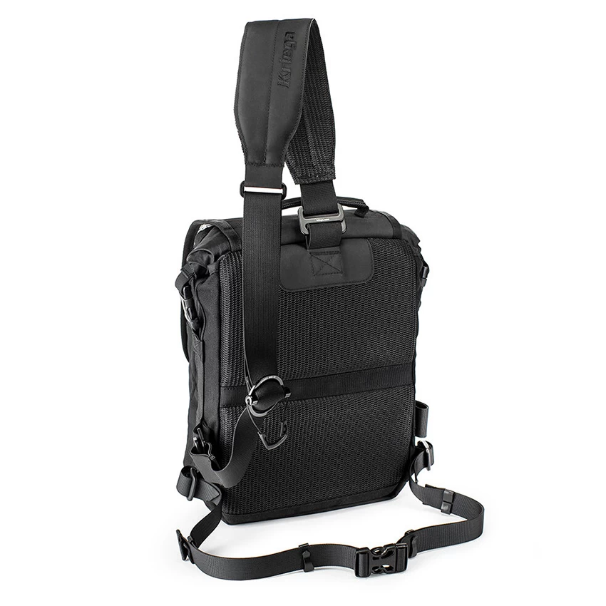 - Easy on/off over a helmet and fast strap tensioning with Kriega’s innovative alloy strap adjuster, allowing access to the bag contents whilst wearing.