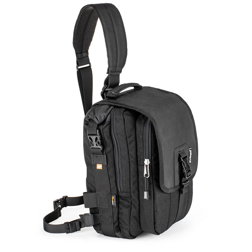 Protect, organise and carry your MacBook Pro or Tablet and other essentials in style, with the latest addition to the Kriega messenger bag range. The Sling Pro features a 50/50 design layout. One half is an 7-litre guaranteed waterproof roll-top compartment, ideal storage for a laptop up to 14” or camera equipment. The other half is split into zip-access storage and organiser pockets for smaller items. Constructed from high-spec materials including Cordura®, Hypalon and heavy-duty YKK® zips throughout, the SLING PRO is built to last.