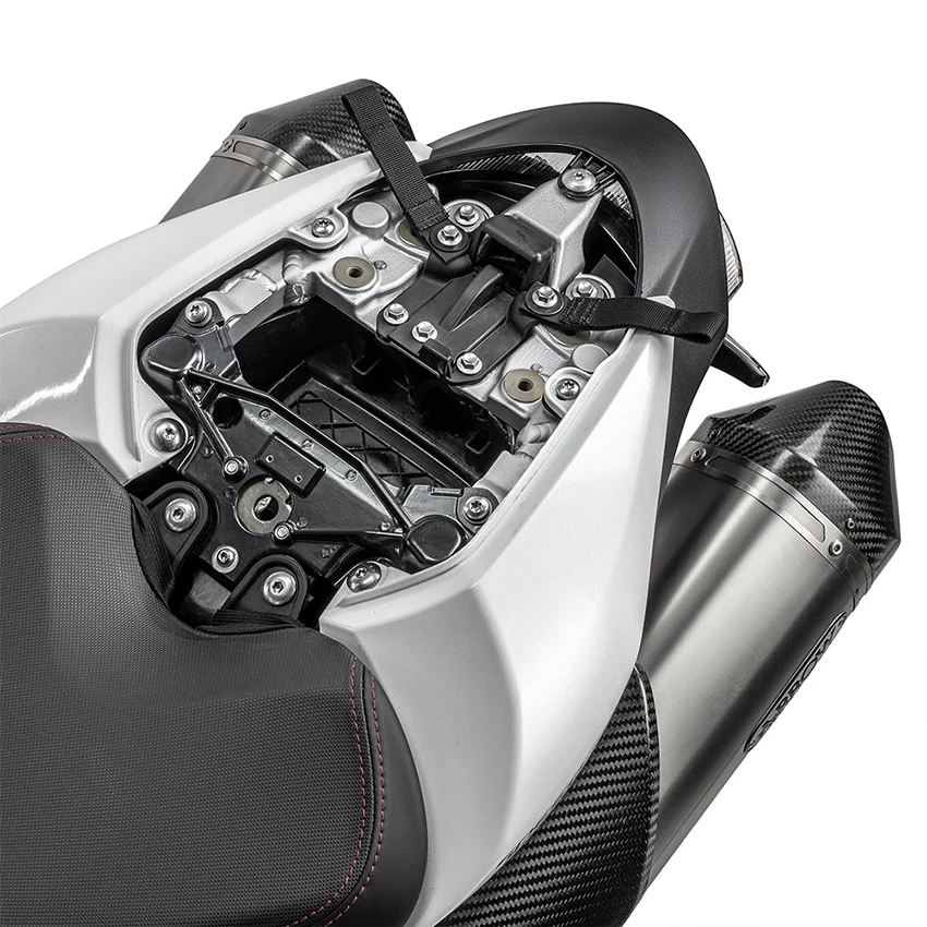 The kit consists of high quality hypalon & nylon webbing loops, that easily fit under the pillion seat using the existing mounting locations. Once fitted, they provide strong hook-on points for any Kriega US-Drypack or US-Drypack Combo.