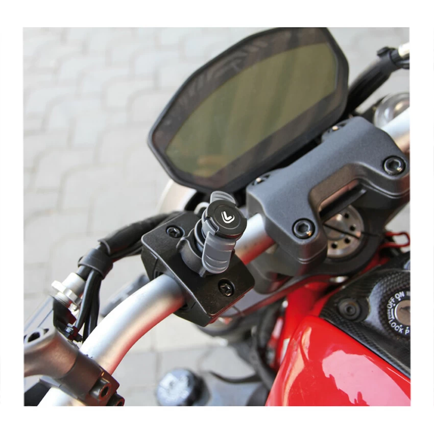 Lampa Opti Handle, fixing for handlebar. Suitable to fix on handlebars Ø 16 to 32mm. Fully adjustable, allows the use of the smartphone vertically and horizontally. Specific for OptiLine accessories