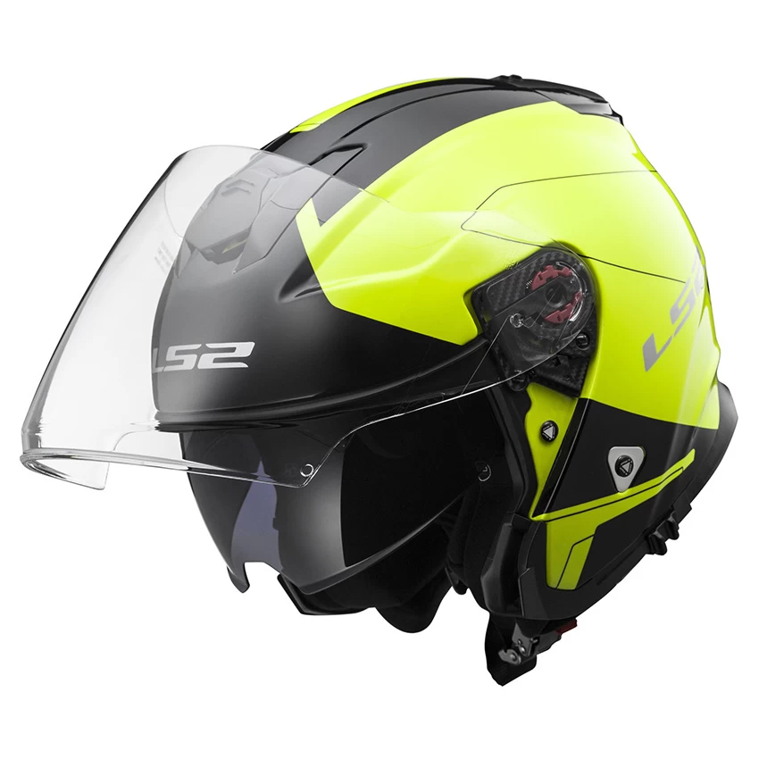 - Twin Shield System – LS2’s drop-down sun shield helps protect the rider’s eyes from bright sun, and moves up and out of the way quickly and easily when entering dark tunnels, offering a more comfortable riding experience