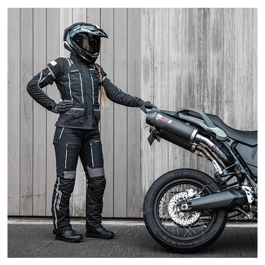 LS2 Nevada Lady motorcycle jacket is made of abrasion-resistant Cordura Nylon Mix polyester fabric. Standard equipped with removable shoulder and elbow protectors, and prepared for a back protector insert. The Nevada women’s jacket features ventilation panels on the sleeves, reflective zippers as wel as two large front and one back opening (all openable by means of YKK zips) which ensure air flow when temperatures rise. The inside consists of removable thermal down and a (removable) waterproof membrane.