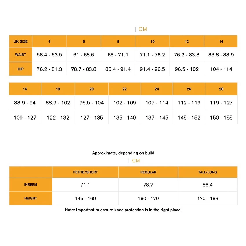 MotoGirl’s bib-and-brace overalls, dungarees or as MotoGirl calls them “Dungri’s. Protective and ideal for wearing on the motorcycle or as casual trousers. The Dungri has a Aramid fiber lining at the critical areas. And the CE Level 2 Knee protectors are supplied as standard.