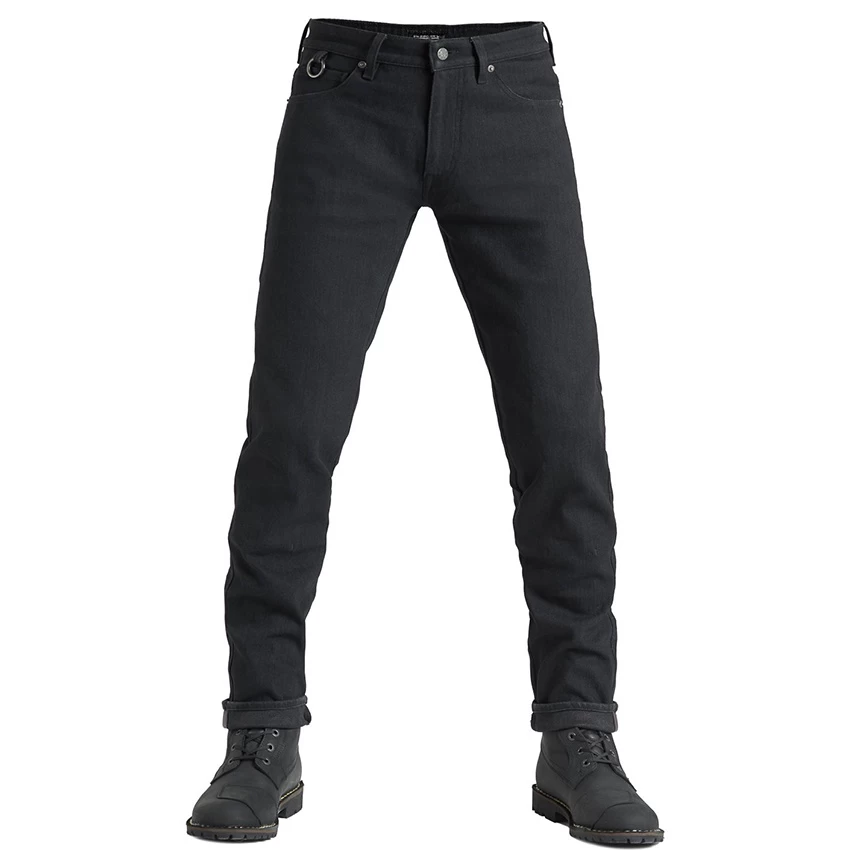 The strength of the Steel Black 02 lies in its simplicity. With a slim-fit, charcoal black color, black details, these jeans rock the classy plain look. Made of highly heat-conducting and extremely durable fabric. The 13oz single layer comfort stretch denim with 25% Dyneemaยฎ provides versatility and extra comfort. Furthermore, these motorcycle jeans are equipped with SAS-TEC Triple flex protection on the knees as well as on the hips.