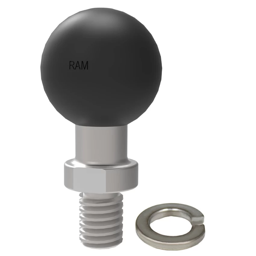 The RAM-B-236U consists of a 1″ rubber ball connected to a 3/8″-16 threaded post. Thread length is .5″. The RAM-B-236U will attach to all 1″ diameter ball compatible arms.