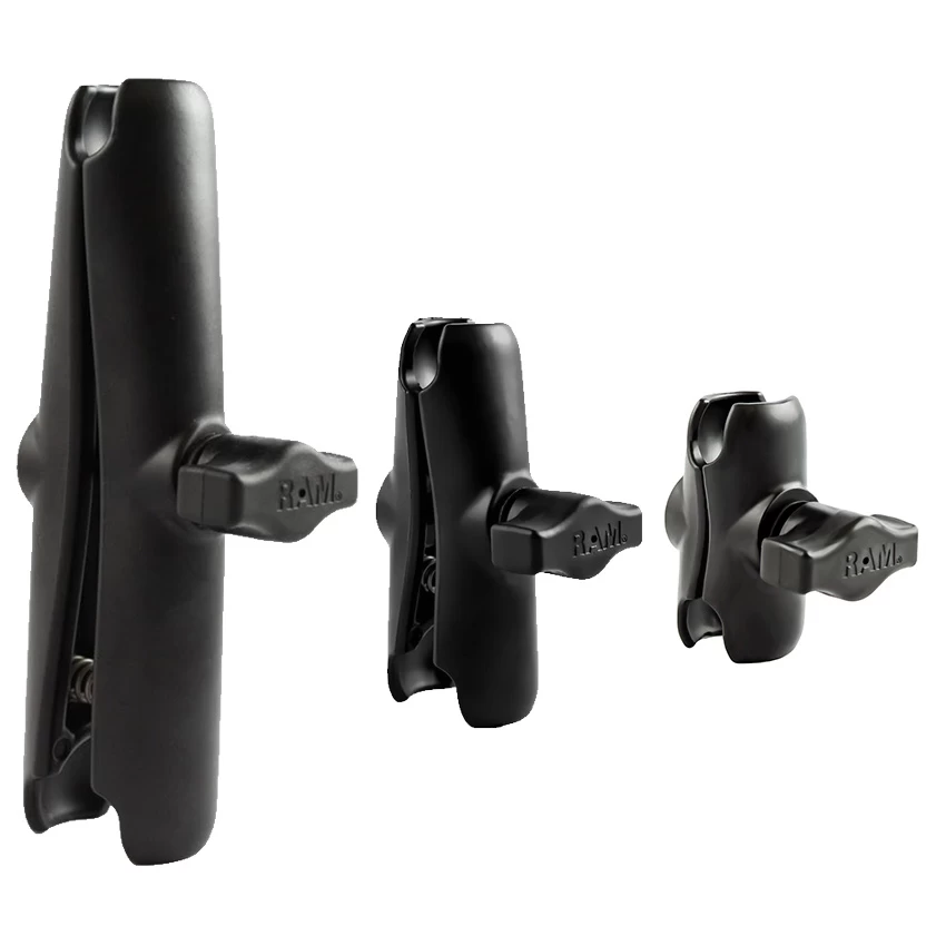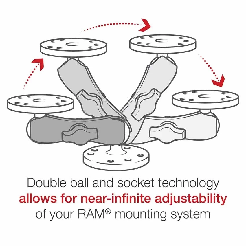 The RAM-B-201U, standard double socket arm, has a socket at both ends that accommodates 1″ ball bases. A single spring inside the arm opens the end sockets, allowing you to pivot the ball and socket connection. This socket technology allows for almost infinite adjustment and perfect viewing angles.