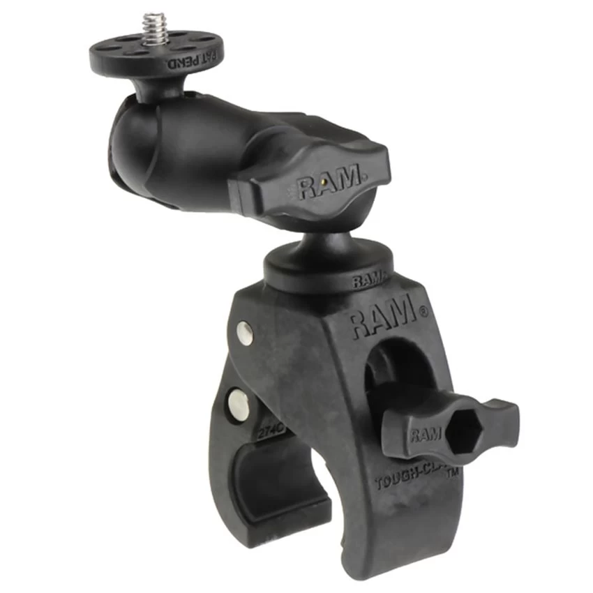 The RAM-B-400-A-366U consists of the RAM® Tough-Claw™ rail clamp base, short double socket arm and 1/4″-20 threaded ball adapter for action cameras. The RAM® Tough-Claw™ is the perfect mounting base for quick and easy tool-less installation and removal on round, square, odd shaped rails and bars. The RAM® Tough-Claw™ can be clamped on rails from 0.625″ – 1.14″ outer diameter.
