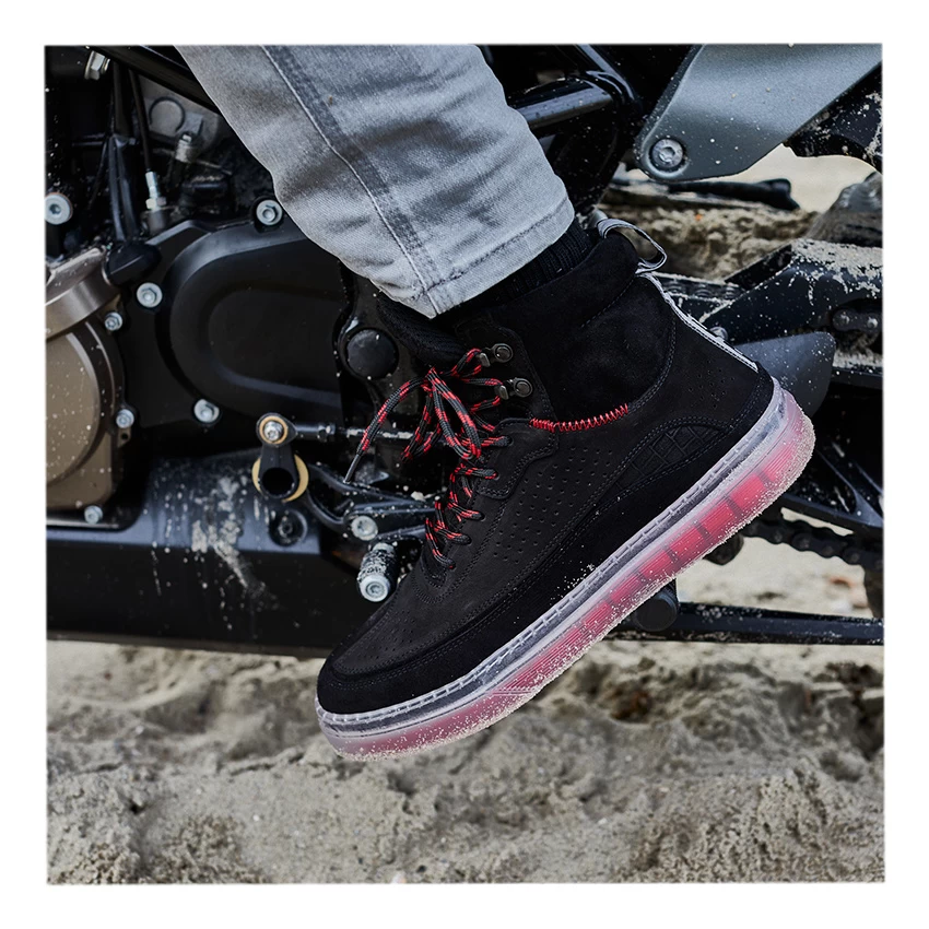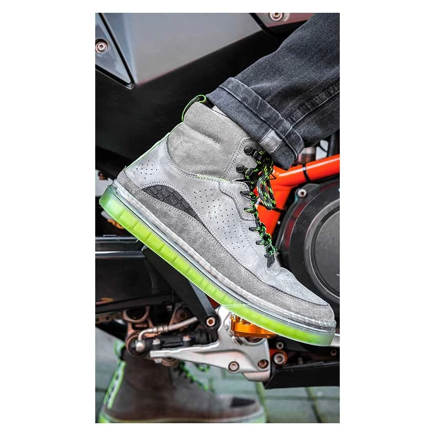 The lightweight Filter high-top sneakers offer riders all the comfort and protection that they expect from a motorcycle-ready shoe. They have a tough leather exterior, a tongue made from suede, an injected ankle cup, and thermoformed heel cups and toe caps to take care of the safety component. To keep feet feeling cool, perforation holes can be found on the toe and at the inner sides. When riding or walking, the inclusion of the OrthoLite® X40 insole adds to the overall comfort of the shoe.