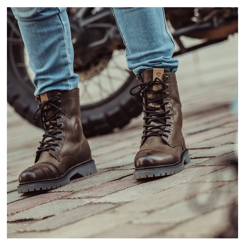 With the Portland Ladies motorcycle shoes, Rev’it! created a sturdy but female-focused product for riders looking for durability and quality. The Revit Portland Ladies shoes take the form and details of a traditional worker-style boot. Then, hand-stitched details and a small reflective piece at the heel show that traditional styling and modern details go hand-in-hand when looking your next favourite pair of shoes; matching almost anything in your wardrobe. The thermoformed heel and toe cups, as well as the injected ankle cups that – together with a strong exterior – create the resumé of safety features that measure up to CE requirements for protective footwear. Thanks to the OrthoLite® insole, the Portland Ladies will become the shoes of choice for female riders, both on and off the bike.