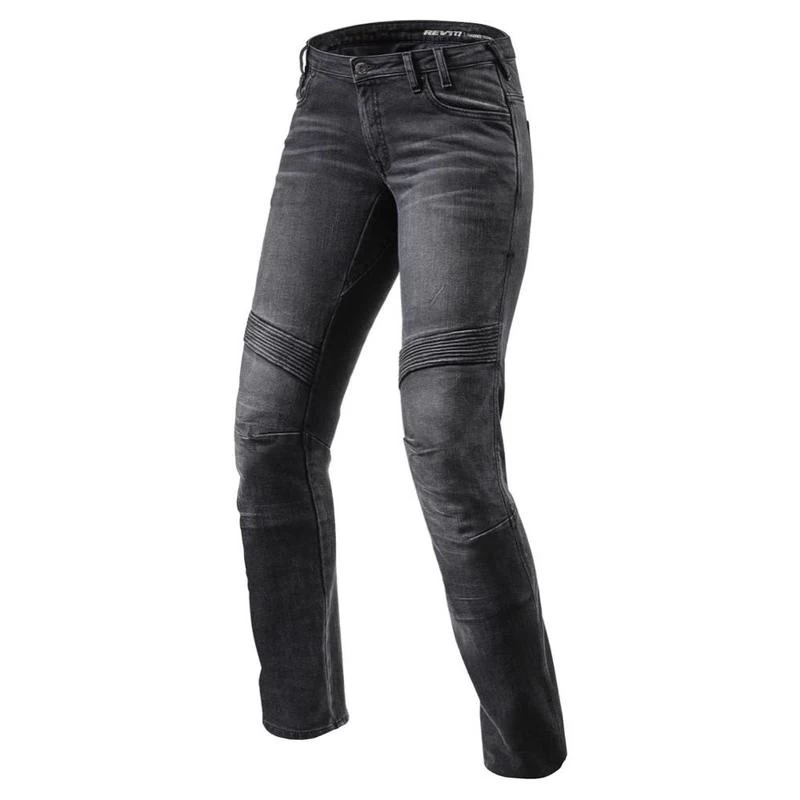 With the Moto Ladies jeans we add another new style to the already very popular REV’IT! Ladies denim collection. Because of a specific ladies’ fit, based on the pattern of a leather motorcycle pants, you can ride your kilometers endlessly comfortably in these jeans, while you can walk through the city in a tiptop and stylish way. Thanks to strategically placed stretch tabs you can enjoy complete freedom of movement on the motor. The extremely strong Cordura® denim is held together by our famous triple stitching to keep the outer fabric extremely durable. In addition, SEESMART ™ CE-level 1 protectors protect knees while you can use additional protection with our SEESMART ™ hip protectors.