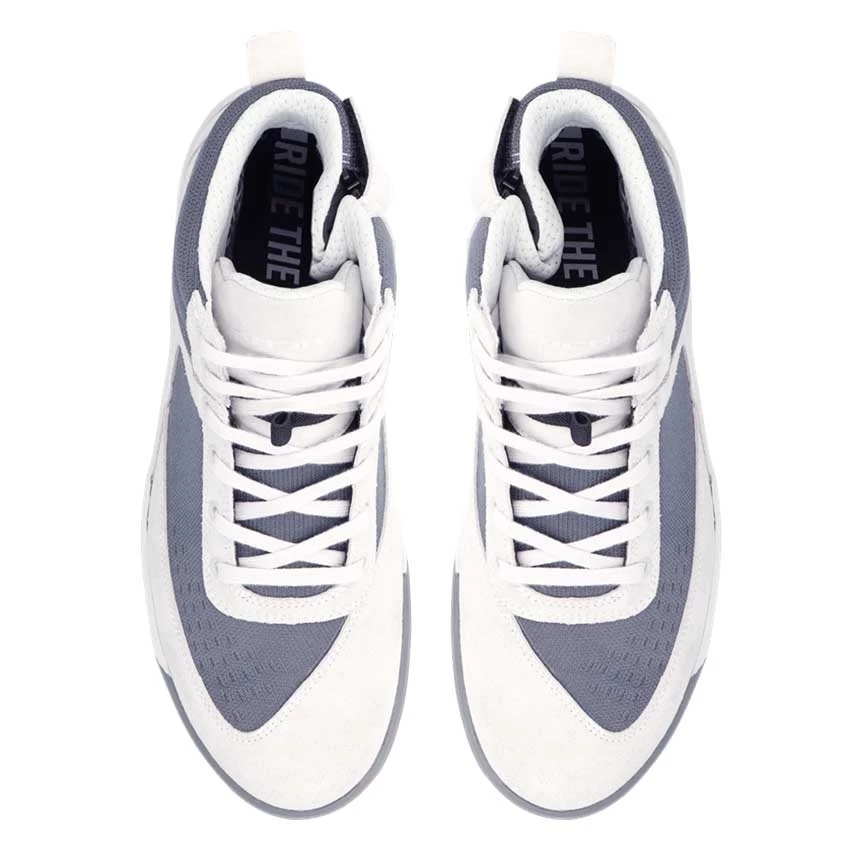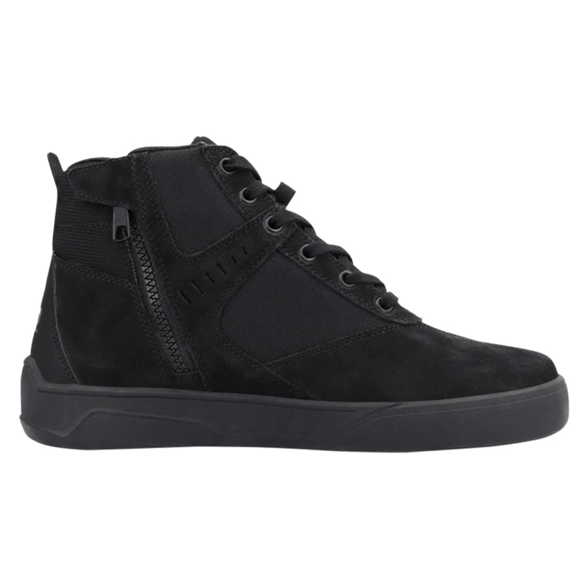 The rugged look of the Richa Douglas WP motorcycle sneaker, combined with velvet-soft suede, fits perfectly under your motorcycle jeans or touring outfit. The knitted sections provide cooling on hot summer days, while the Aquashell membrane keeps your feet dry. And safe, because Douglas is CE-certified and features additional reinforcement around the ankle, heel, and toes. Its smart design makes it the perfect comfortable companion.