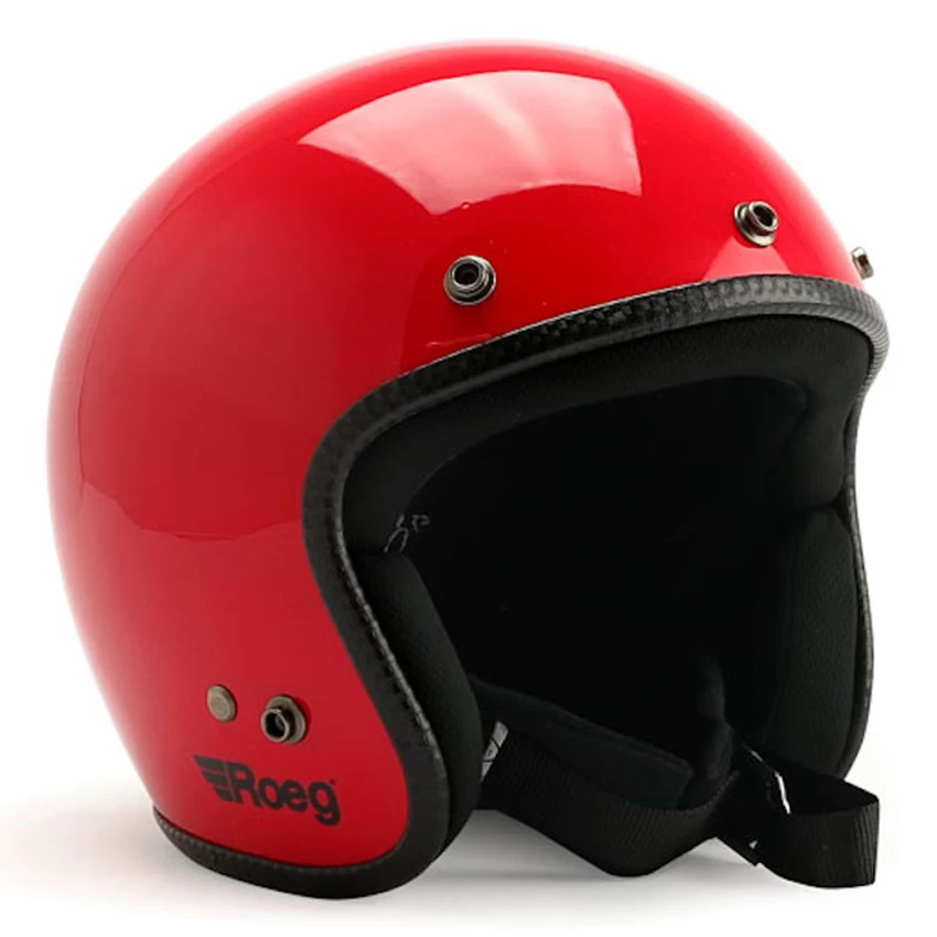 The ROEG® JETT helmet is available in three fiberglass shell sizes to keep the helmet as small as possible while keeping the ECE-R22.05 approval. Complete with removable cheekpads, padded chin strap and classic double d-ring closure, plus integrated snaps for visors/shields. The result is a helmet that sits nice and low on your head and does not make you look like a melon.