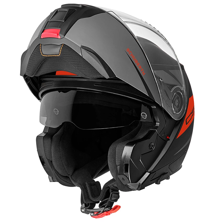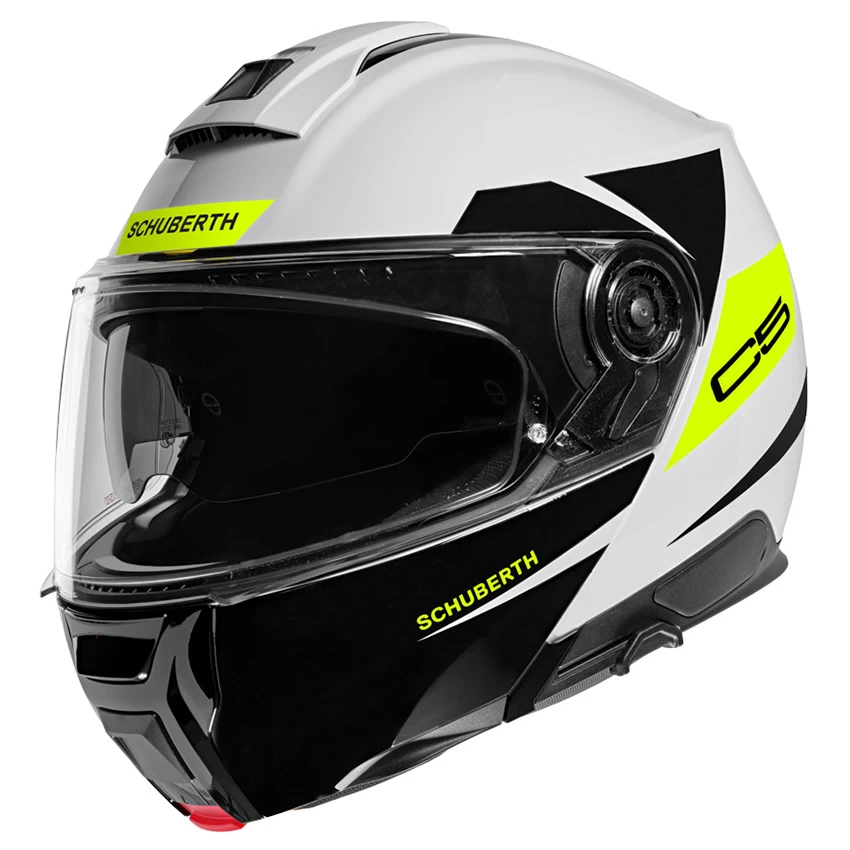 The Schuberth C5 Eclipse helmet blends ultimate safety, amazing aerodynamic and aeroacoustic performance with compact and light design. One of the first helmets featuring the P/J homologation and approved according the new ECE 22.06 regulation. A DFP Fiber Glass shell reinforced with Carbon fiber provides for improved shock absorption and lighter weight. The Schuberth C5 offers aeroacoustic comfort with only 85 dB(A) at 100 km/h in a naked bike.