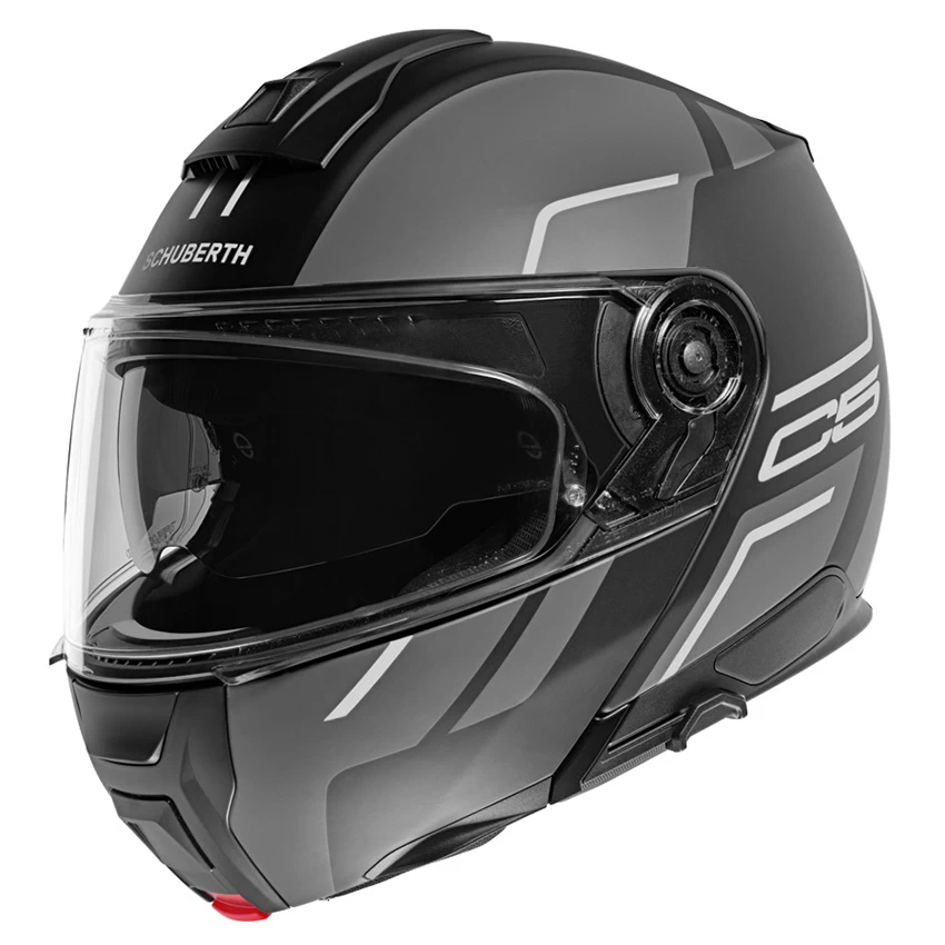 The Schuberth C5 Master helmet blends ultimate safety, amazing aerodynamic and aeroacoustic performance with compact and light design. One of the first helmets featuring the P/J homologation and approved according the new ECE 22.06 regulation. A DFP Fiber Glass shell reinforced with Carbon fiber provides for improved shock absorption and lighter weight. The Schuberth C5 offers aeroacoustic comfort with only 85 dB(A) at 100 km/h in a naked bike.