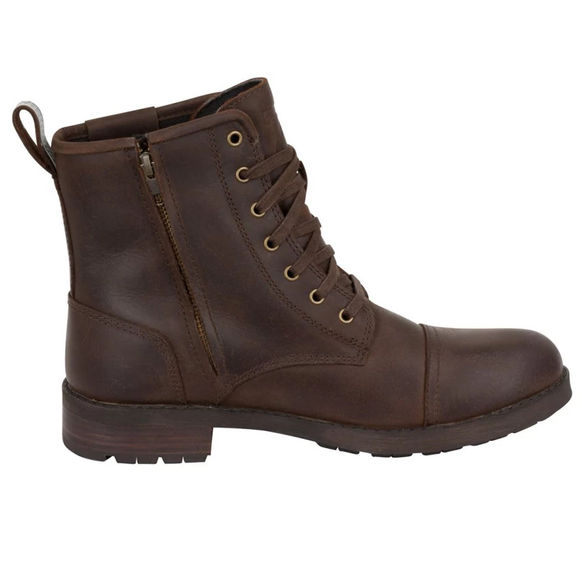 The Segura Edmond vintage brown leather motorcycle shoe is easy to put on thanks to the zippers on the side. Made from a cowhide leather exterior and equipped with a waterproof and breathable membrane, ideal when it rains. The reinforcements around the toes and ankles provide protection at impact.Â