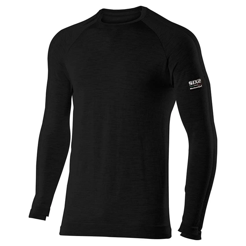 Sixs Long-sleeve round neck jersey Merino Wool. The weight of the fabric, 164g/m2, makes this product particularly suitable for use at low temperatures. A simple and extremely versatile knit in Carbon Merino Wool®, ideal for use as underwear or an intermediate layer. The polypropylene layer in contact with the skin prevents accumulation of perspiration, providing unmatched comfort. The merino wool (one of the natural fibers with the highest thermoregulatory capabilities) is properly placed in the outer layer to act as a barrier
