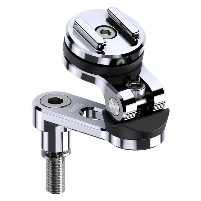 The SP Connect™ Bar Clamp mount Pro Chrome lets you mount your smartphone to your motorcycle in seconds. The Bar Clamp Mount Pro also has a swivelling and rotating head so your smartphone can always be positioned perfectly. Just screw this sleek mount to the bar clamp of your motorbike and you are ready to mount the SP Connect™ PHONE CASE(or UNIVERSAL INTERFACE) by placing it on the mount and turning it 90° clockwise. Your mobile phone is securely positioned in your field of vision, allowing you to navigate, access your playlists.