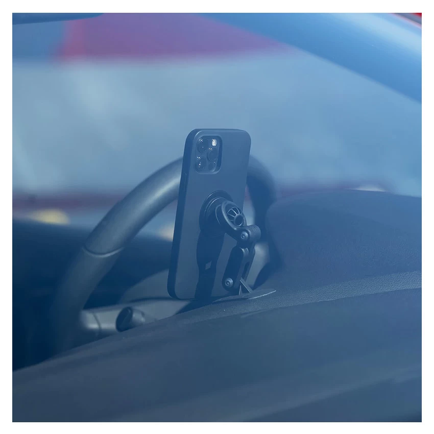 Your mobile phone is securely positioned right in your field of vision, allowing you to navigate, access your playlists or read messages.