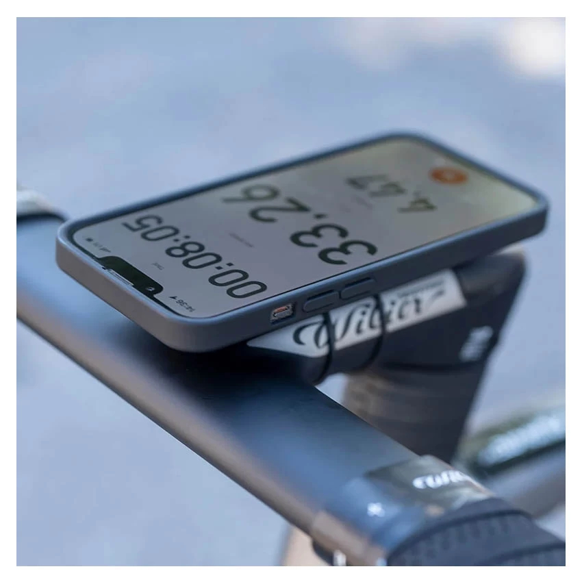 To fix your phone case on the holder, simply dock it and turn your phone 90° clockwise. If you want to mount a Garmin® or Wahoo® bike computer on the mount, use the appropriate adapter (included).