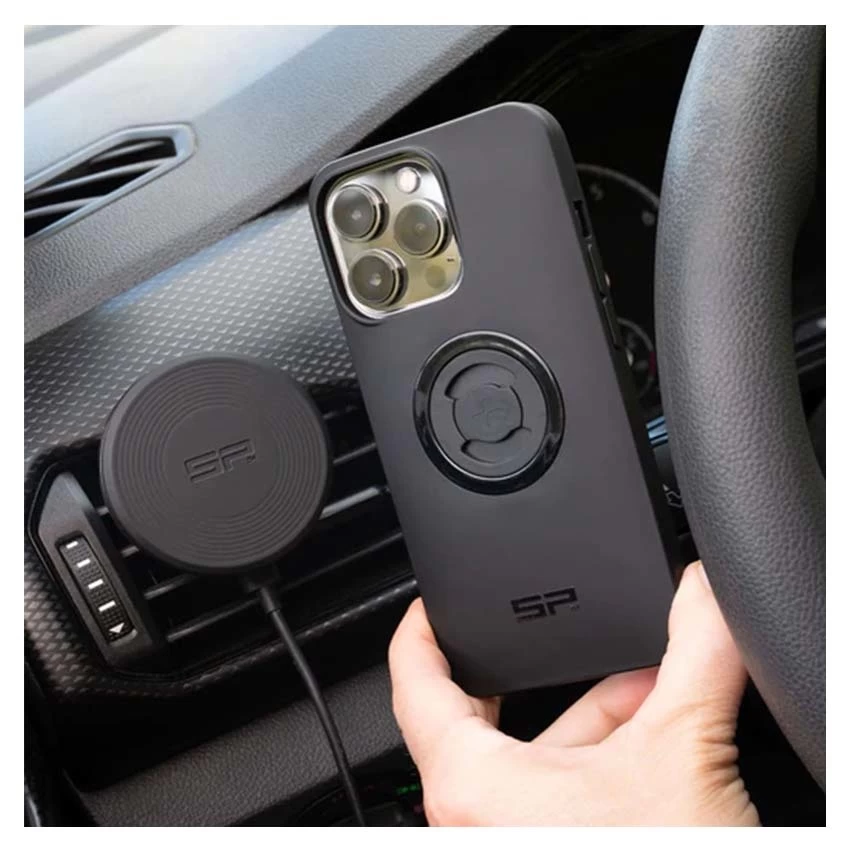 The Charging Vent Mount is the most flexible solution for mounting your SPC+ phone case in the car and for inductive charging while driving. Mounts easily to the ventilation grille. Your mobile phone is securely and visibly locked in one easy step thanks to powerful magnets. Your navigation is always in view and you can optimally use the hands-free function of your smartphone while driving. USB cable included.
