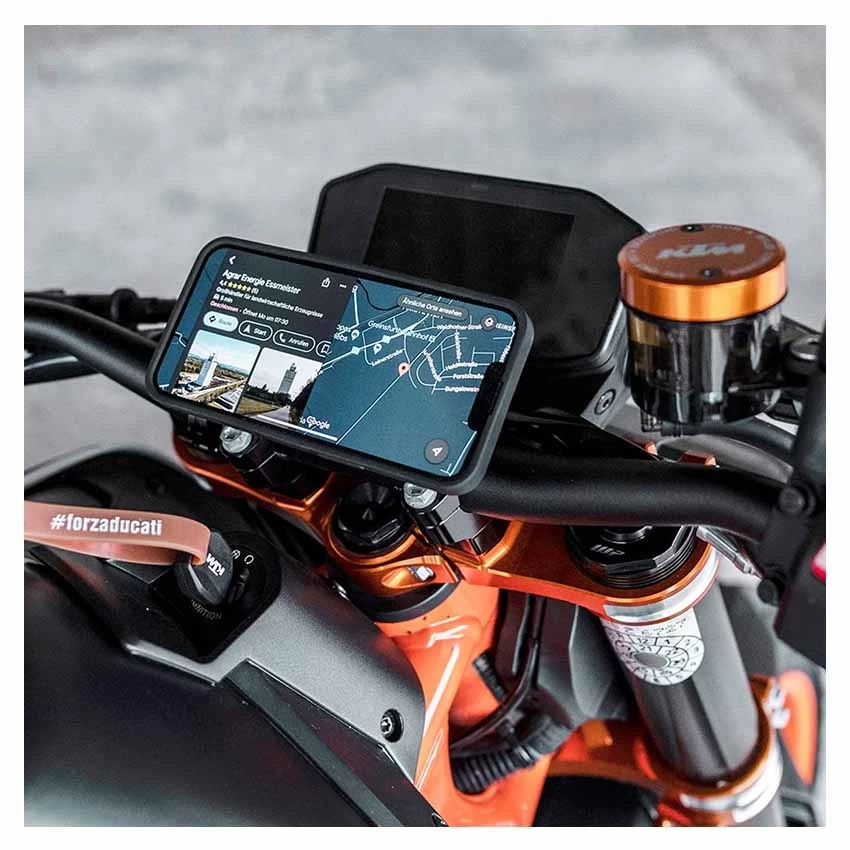 The SP Connect Phone Case SPC+ iPhone is slim, flexible and ultimately secure. Perfectly shaped to fit in your hand, you can mount it on any SP Connect holder in just one second. Thanks to a 40% thinner design, the new SP Phone case model is fully MagSafe®compatible. Ready for inductive charging and magnetic attachment. Shockproof and resistant, even in extreme situations. Protect your phone from falls, scratches and jumps. No compromise when it comes to your device.