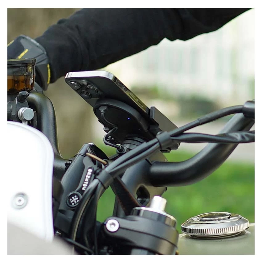 The Charging Clamp Mount also supports wireless charging. Simply supply the inductive charger with power via your motor, your e-bike battery or a powerbank to charge your phone wirelessly. Flat battery on the road? No longer a problem.