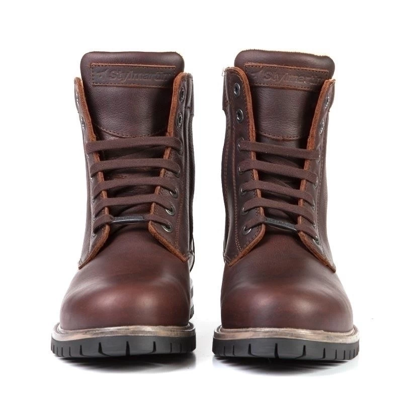 Café racer boots also intended for urban use, due to their simplicity of line and the use of natural full grain leather only choice as valuable pieces, characterized by particular details and protections that ensure safety even for daily use, sold with shifter removable elastic gear protection. In full grain natural leather with breathable lining with malleolus protections. Anatomic and antibacterial footbed.
