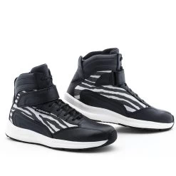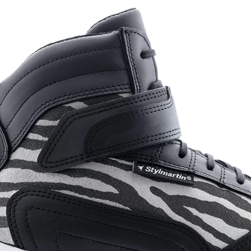 With the Stylmartin Audax a new style of motorcycle shoe is born. The presence of suede in the side inserts with a zebra pattern makes this shoe innovative. With a waterproof and breathable lining, malleolus PU internal protection on both sides, and its newly designed anti-slip sole, the Audax motorcycle shoe is safe and pleasant to wear.
