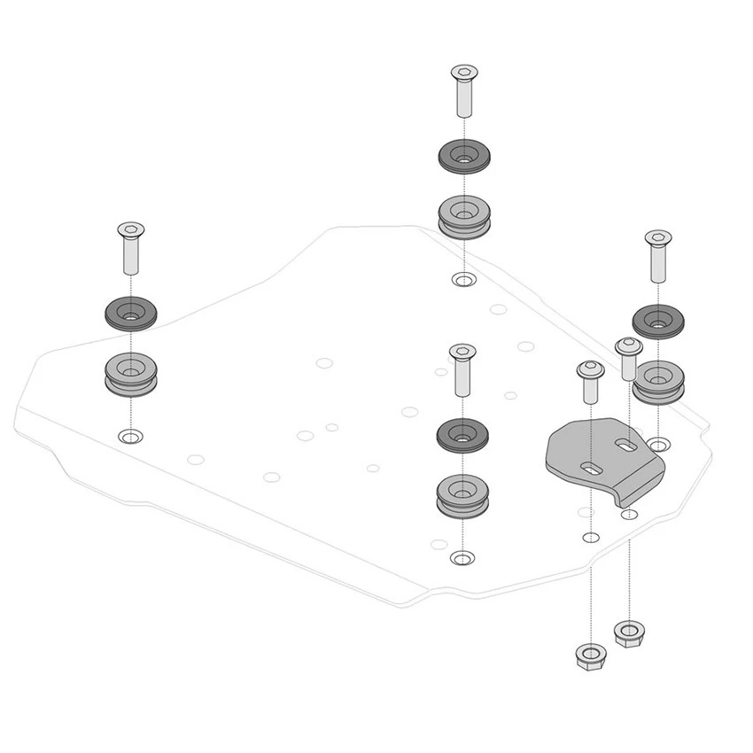 - For attaching a TRAX top case to a SW-Motech Steel-Rack