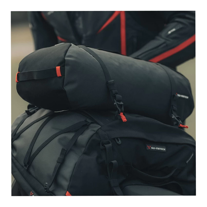 The SW-Motech PRO Tentbag tail bag has a capacity of 18 liters and can hold most two-person tents. The tentbag can also be used as additional storage for clothes and other luggage. With the included straps you can easily attach the bag to other large PRO tail bags like the PRO Cargobag.