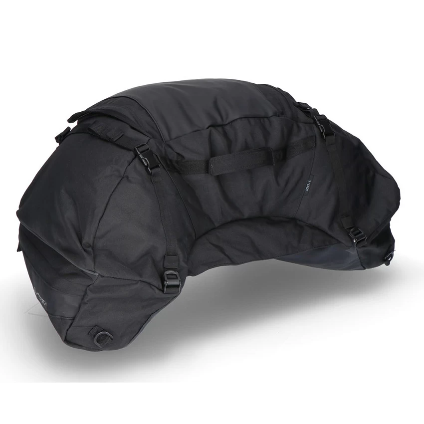 With 50 liters of volume, the ION L tail bag offers abundant storage space for longer tours. Tie-down straps prevent fluttering when traveling with a light load, also enabling you to attach additional pieces of luggage to the bag. Two outer pockets on the sides provide easy access to your most essential belongings. Durable cam buckles and loop straps enable quick tying and, along with the flexible shape and anti-slip bottom, they give the bag a secure hold on the passenger seat or tail. The carrying handle is another added benefit of the spacious ION L tail bag.