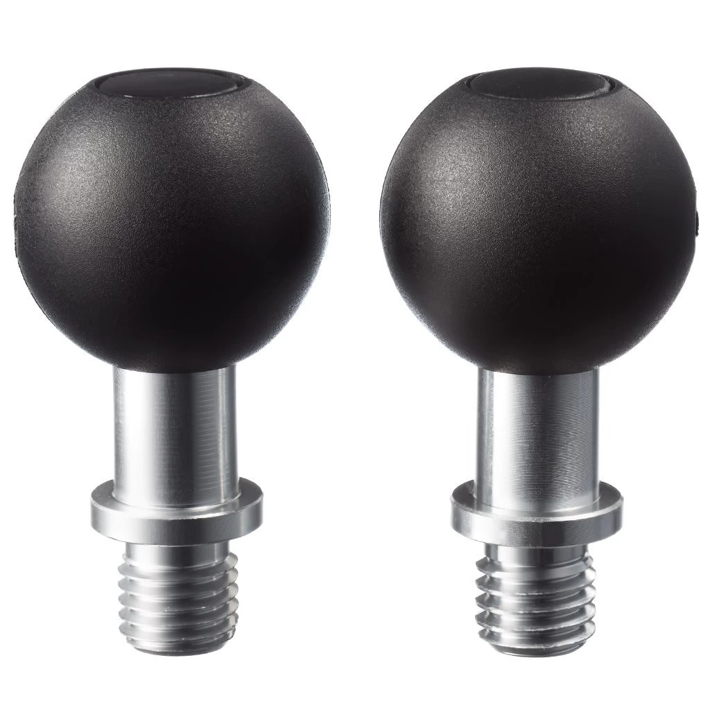 M10 screw with 25mm ball with 1.25 and 1.5 threads. This short attachment is ideal to replace for example a mirror to use for mounting navigation or a phone holder.